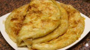 – تُطوى العجينة بشكل مثلث أو دائرة حسب الرغبة. ولإضافة المزيد من الطبقات، يمكن تكرار العملية للحصول على قوام أكثر هشاشة.